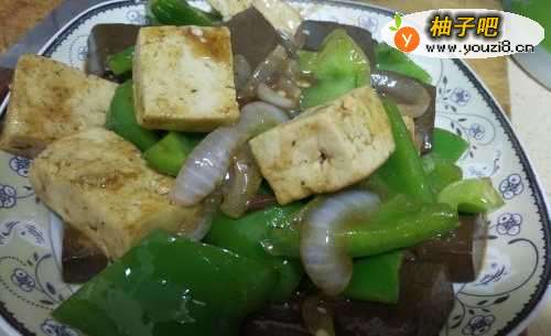 3起锅烧油,加洋葱丝爆香,加焯水的鸭血豆腐翻炒!