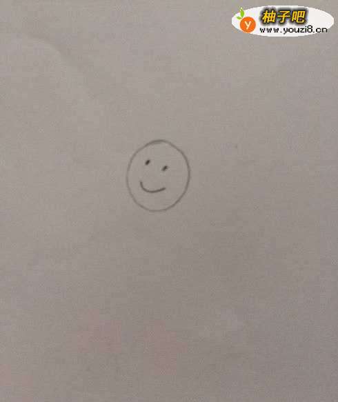 首先画出一个圆脸,点上两个眼睛,加上一个微笑的嘴巴,这就是爸爸的脸蛋。