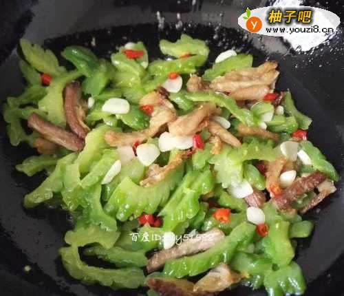 7放入焯过火的苦瓜,大火一起翻炒几下。