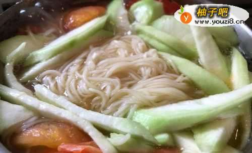 8加入西红柿块一起煮5分钟左右。