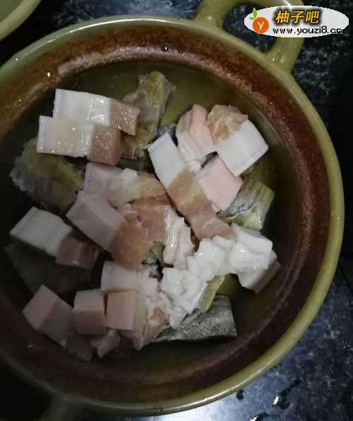 8时间到后,咸鱼豆酱炖猪肉就成功啦。