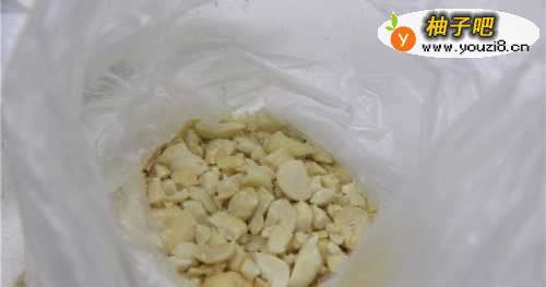 7然后趁巧克力没干之前铺上花生仁,待完全冷却后切长条即可食用。