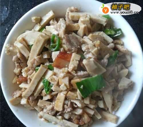 烹饪又香又松软,不失嚼劲的干豆腐,除了前期的浸泡控制(但又不能泡得过久),炒好之后放少量水焖一会,这样更松软。