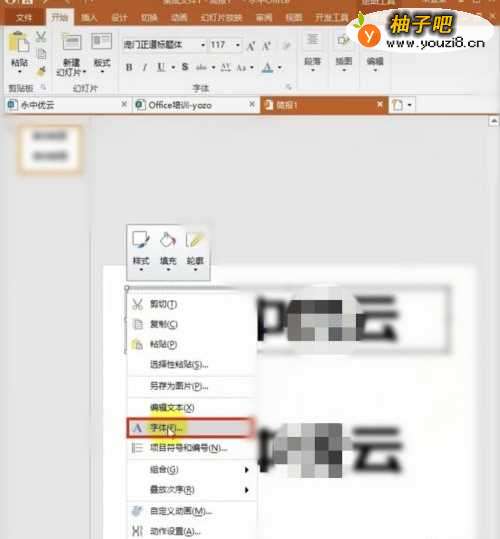 2选中第一个文本框,右击鼠标,选择【字体】按钮,这时会跳出“字体”弹出框,如图所示: