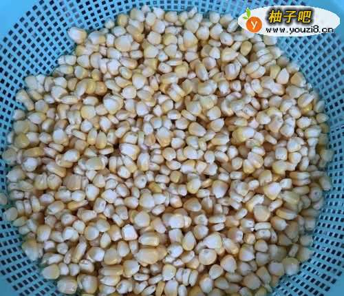 将玉米粒剥下来,洗净;准备2根小葱,分成葱花和葱白。
