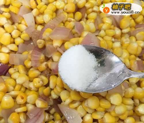 1、把玉米剥成粒,洋葱切小块,再把小葱分成葱花和葱白;2、炒锅热油爆香葱白;3、然后放入玉米粒,先炒5分熟;4、再放洋葱炒断生;5、接着加入生抽、解决、食盐调味;6、最后放入葱花炒匀即可。