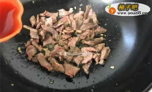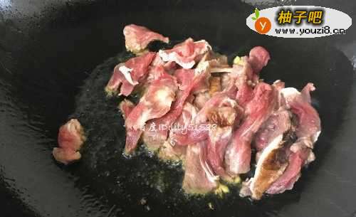 5瘦肉炒变色后,放点料酒去腥。