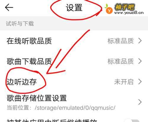 4第四步:在设置里面找到“边听边存"如下图所示。