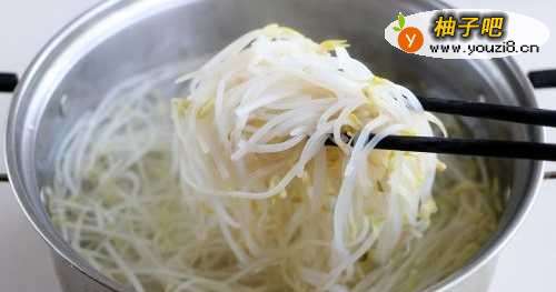 2豆芽洗净,开水焯水一遍,过凉开水;