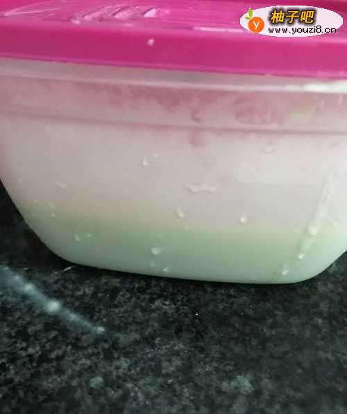 3然后盖上盖子,等待发酵。发酵到2倍大就可以了。发酵的时间根据温度而定的,夏天快些,冬天慢些。所以不要着急。