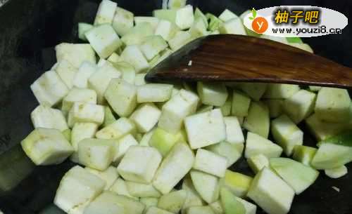 5加入茄子块,放点清水焖上5分钟。