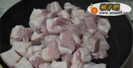 4净锅坐火(不放油),倒入沥干水分的五花肉。