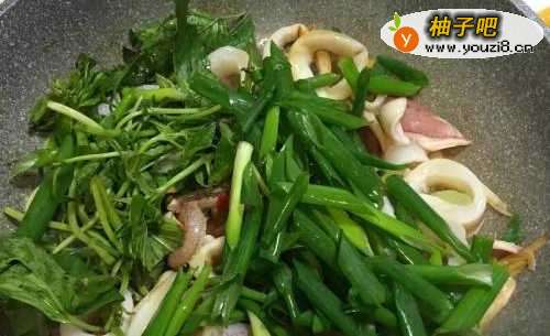 4放入鱿鱼翻炒