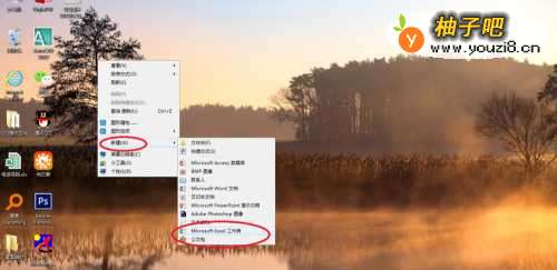 2在电脑桌面上,右击鼠标选择【新建】-【新建excel】,如图。
