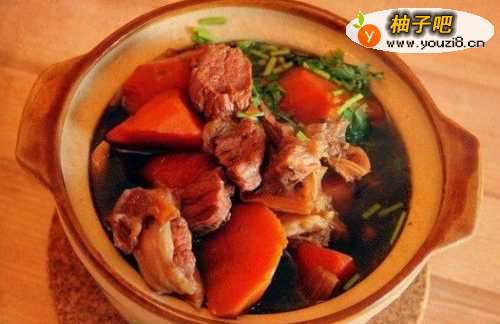 胡萝卜炖牛腩是一道家常的美食,胡萝卜和牛腩它们的蛋白质可以互补,使菜肴的蛋白质营养价值提高。