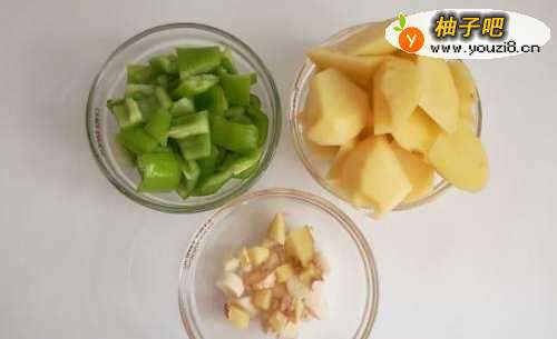 2青椒洗净切块,姜和蒜切小块,土豆滚刀块备用