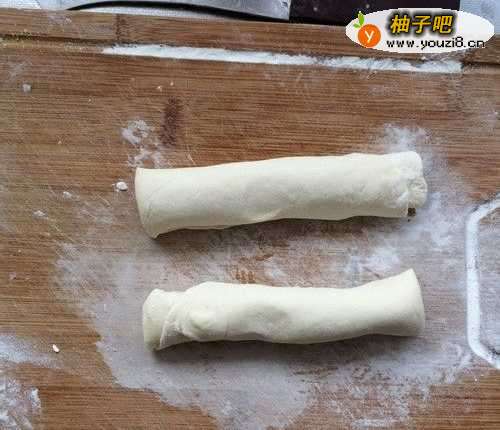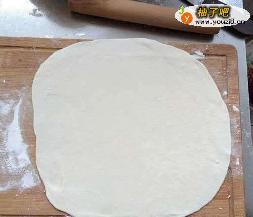9每一段都按照如图所示的方式,首先叠起来。目的是为了压平,这样饼就会有很多层,味道更鲜美。