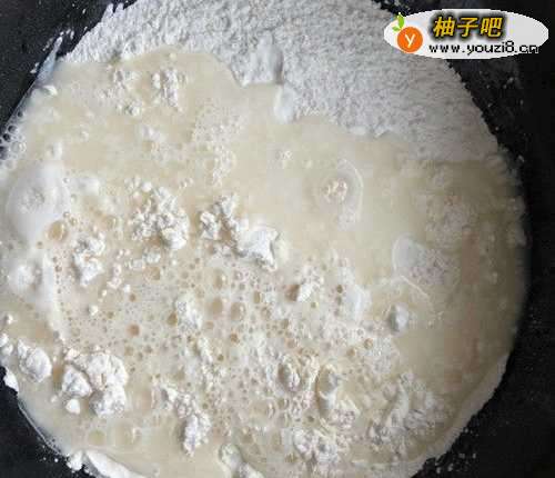 2和面可是个技术活。如果对水和面粉的比例拿捏不准,就学愚人我的样子,每次少加一点水,慢慢和面,先和成雨滴状,再和成长条状,最后活成一个整体。