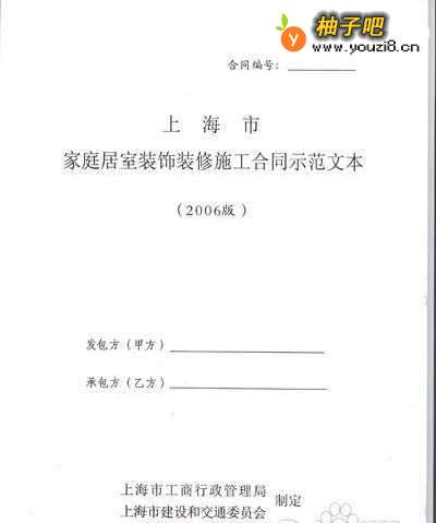 2、上海市工商行政管理局、上海市建设和交通委员会共同制定的《上海市家庭居室装饰装修施工合同文本(2006版)》。