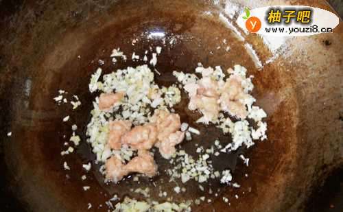5下肉泥划散,下豆豉煸香。