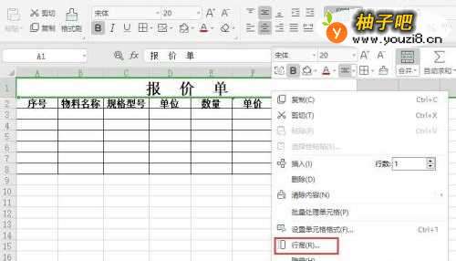 4鼠标定位在选中的行上,右击选择行高
