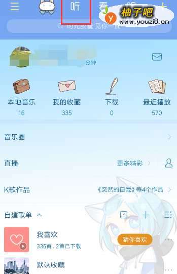 2来到酷狗音乐界面,点击上面的听,如图所示