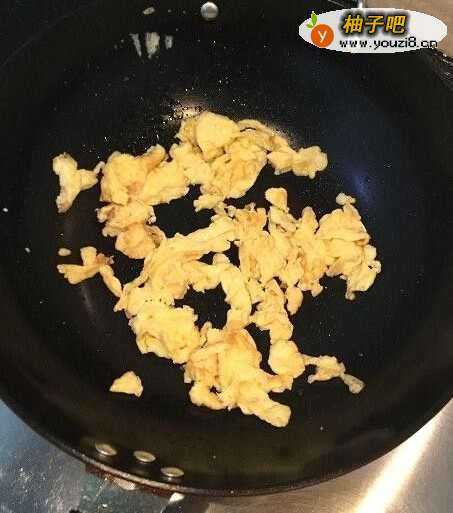 3先炒鸡蛋,炒碎。黄的比较深的时候就可以下一步了。