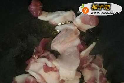 3起锅,锅烧热后倒入少量食用油,放入五花肉,煸炒至微软焦黄时盛出;