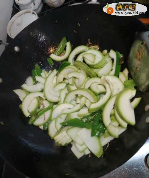 5第五步,倒入切好的窝瓜翻炒。
