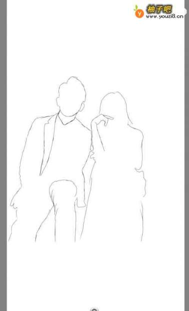 我们在纸上,画出新郎和新娘的整体轮廓。