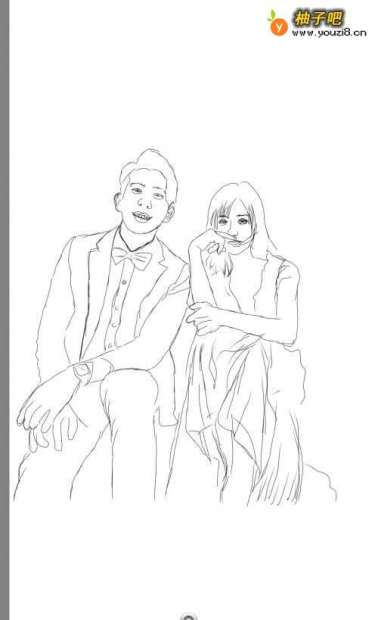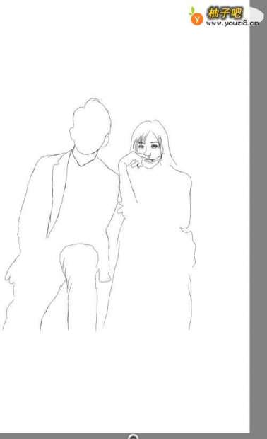 4现在开始对新郎新娘服饰,进行一个线条的绘画。