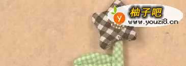 4再用绿色花纹棉布剪裁出两片一样的叶子的状,制作方法与小花相同。