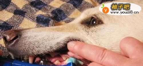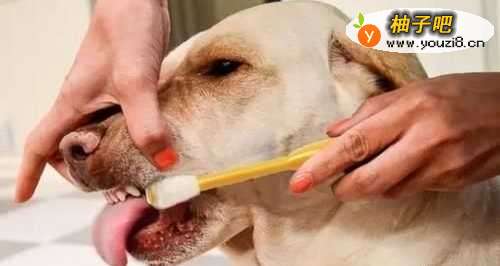4刷牙的时候可以用一只手从上往下握住嘴巴部位,另一只手给狗狗刷牙,刷牙的顺序先侧边,再前面,最后是里面。