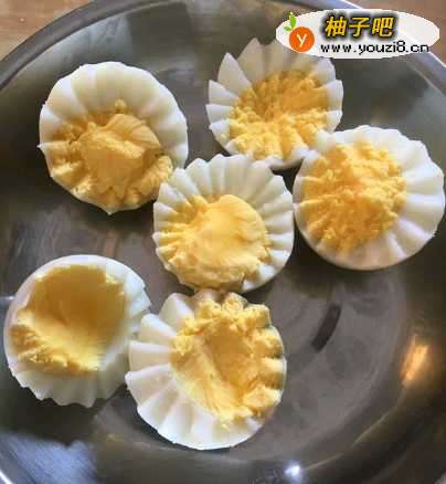 9在蛋白底部切出一点点,让鸡蛋可以直立。