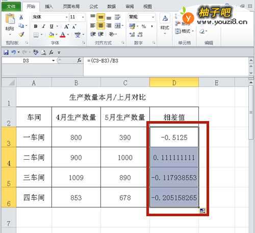在工作中,我们经常会比较现在和历史的数据做比较。比如以下表格中,如何计算5月生产数量相比于4月的下降百分比呢?