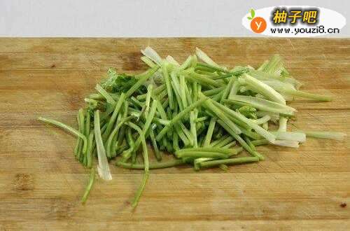 8香菜去叶留梗切成小段,与牛肉装入盘里,放盐,味精,辣椒面,花椒面,可以放几滴香油,最后混合均匀就可以上桌了。
