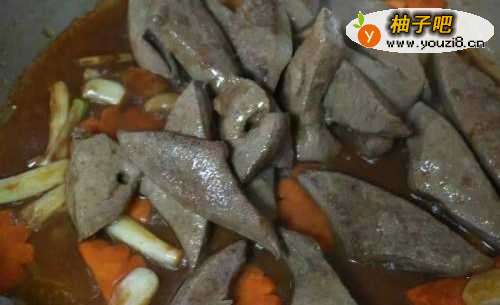 5再放入猪肝,翻炒至猪肝均匀沾附上酱汁即可。