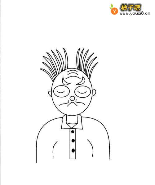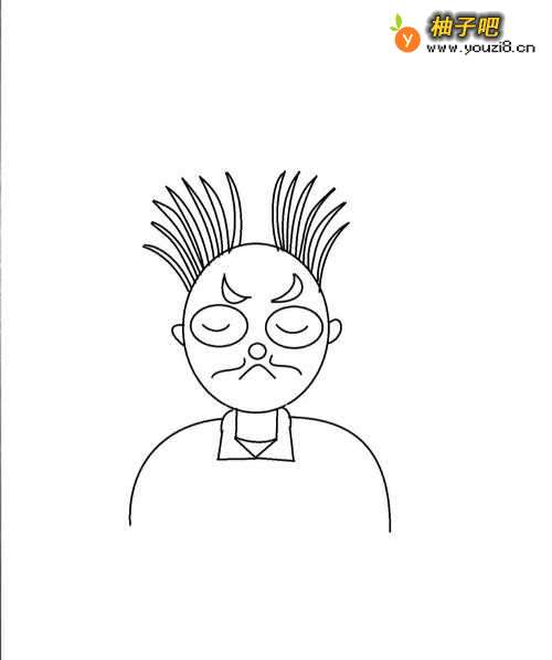4接下来继续画出爷爷生气后竖起来的头发,画好一边把另一边的头发也画好。