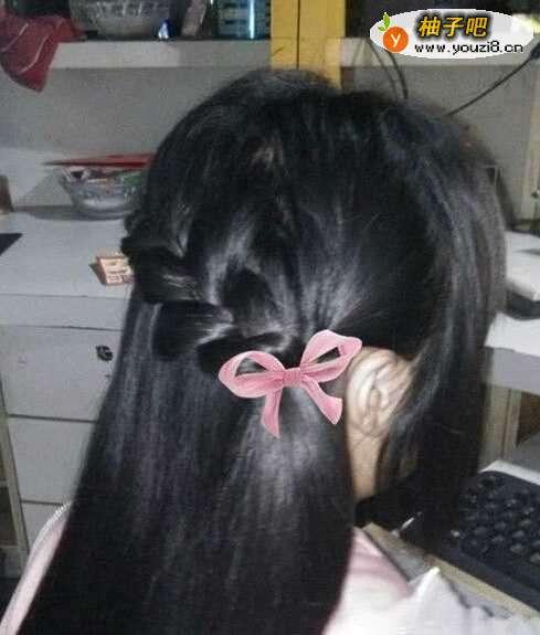 12用皮筋绑好,稍微勒紧往上提,这样公主头就完成啦。(请无视我那皮筋....临时绑的,嘿嘿)
