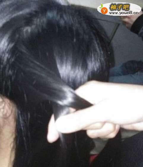 7接着在右边也取一小股,但这次这一小股要和最近的那小股头发合并一起。