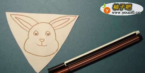 然后,用棕色彩色笔在卡纸上画出可爱兔子的图形,如下图所示。