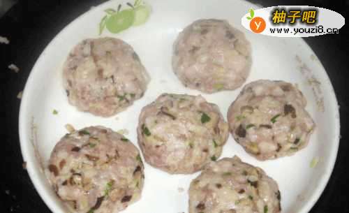 5将肉馅搓成合适大小的丸子。