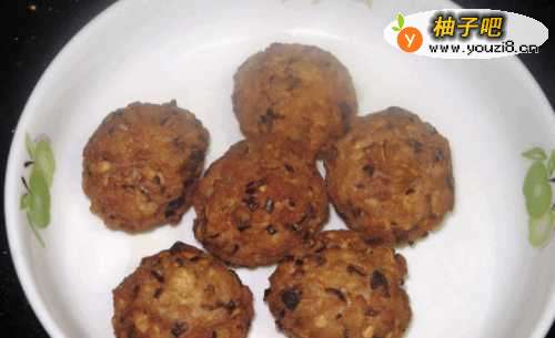 9丸子炸至金黄取出待用。