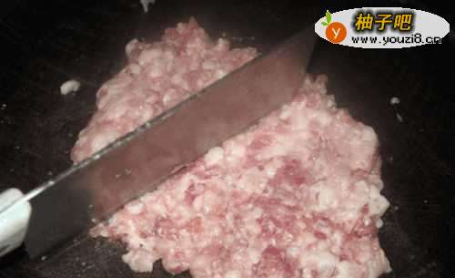 2将肉剁成肉馅。