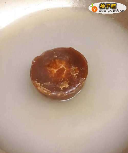 5煮元宵的水留在锅里,加入黑红糖煮至全部融化,大火煮开转小火。