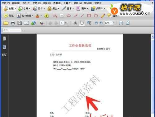 3打开后,我们看到PDF文件中有一个透明的水印。
