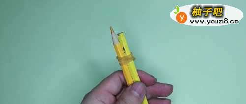 第1条皮筋绑在2支铅笔一端,第2条皮筋绑在2支铅笔另一端