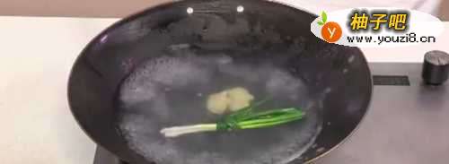 2锅中倒入适量水烧开 倒入葱结姜片