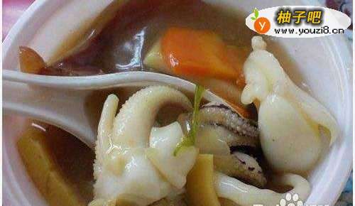 生炒花枝为士林夜市颇负盛名的美食,5、6家聚集在市场内,密度之高也算是一大特色。这道小吃是以新鲜的花枝和笋片、红萝卜一起快炒后,勾芡成羹汤,再加醋和糖调味;汤头尝起来咸中略带酸甜,花枝和笋片则格外鲜嫩爽口。