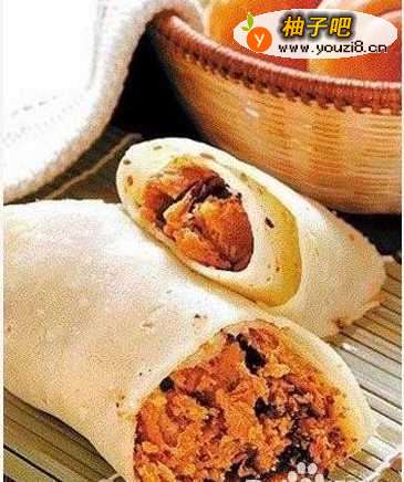 大饼包小饼可说是士林夜市最知名的小吃,做法是在大张面皮中包小油酥饼,内馅则分甜咸两种,甜的有豆沙、芋头、枣泥等,咸的则有花生、咖哩等,吃起来外Q内酥,风味相当独特。